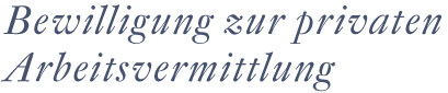 Unsere Vermittlungsbewilligung (AVG) können Sie im öffentlichen SECO-Register unter folgendem Link einsehen: Verzeichnis der bewilligten privaten Arbeitsvermittlungs- und Personalverleihbetriebe |